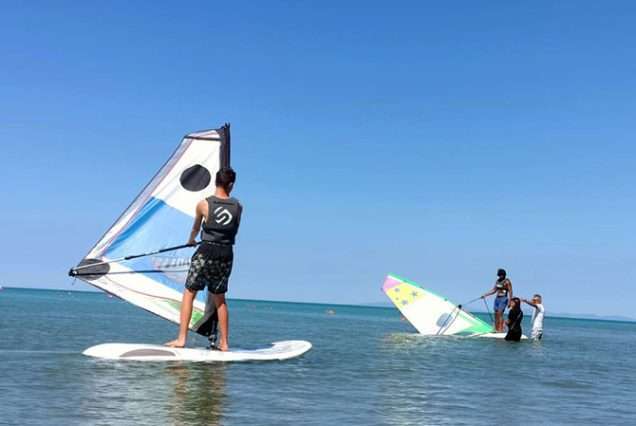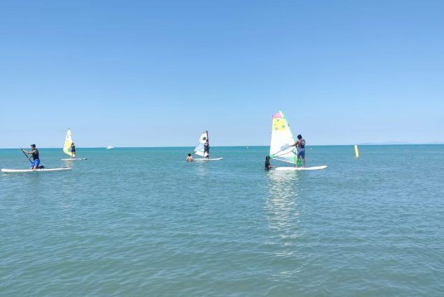 Il corso di Wind surf, canoa e SUP tenuto dagli istruttori federali U.I.S.P. del Club Velico di Marina di Grosseto, prevede 4 lezioni private di wind surf e lezioni giornaliere di canoa e SUP fatte in piccoli gruppi, metterai alla prova il tuo equilibrio, il tuo coordinamento e la capacità di lavorare in team, con un po’ di pratica e la guida di istruttori ed animatori esperti, il divertimento è assicurato.